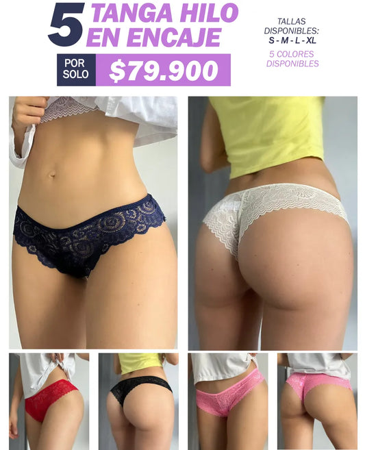 20% DESCUENTO!TANGA HILO ENCAJE - X5 COLORES